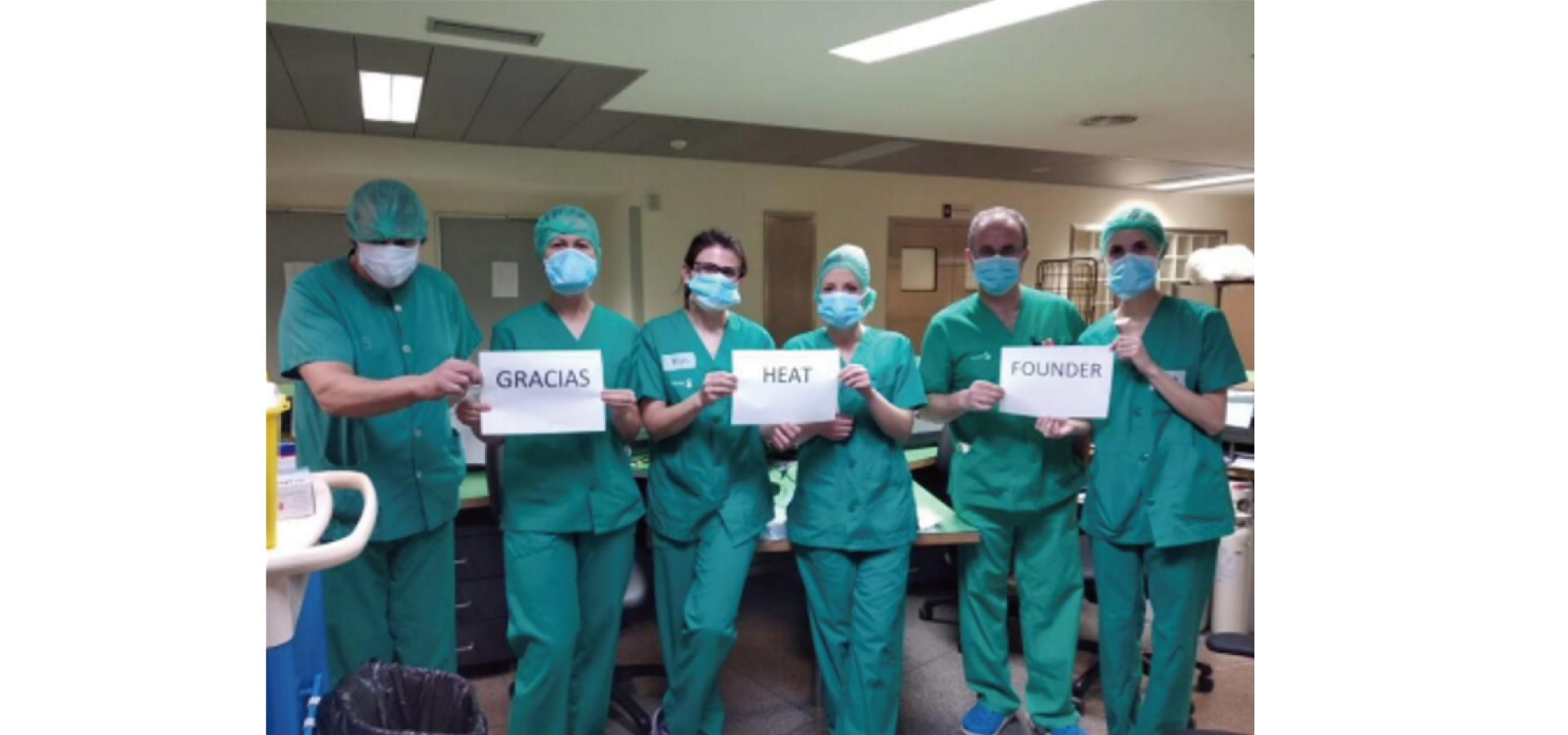 In 2020, COVID19 spread all over the world, and masks were in a big demand, especially in Europe. At that time, Heat Founder purchased a large number of masks and sent to its overseas customers. One of the Spanish clients received 200 masks from us. After keeping 10 pieces for his our own use, he donated the rest to the local hospital. The local hospital took a picture to express their gratitude to us.