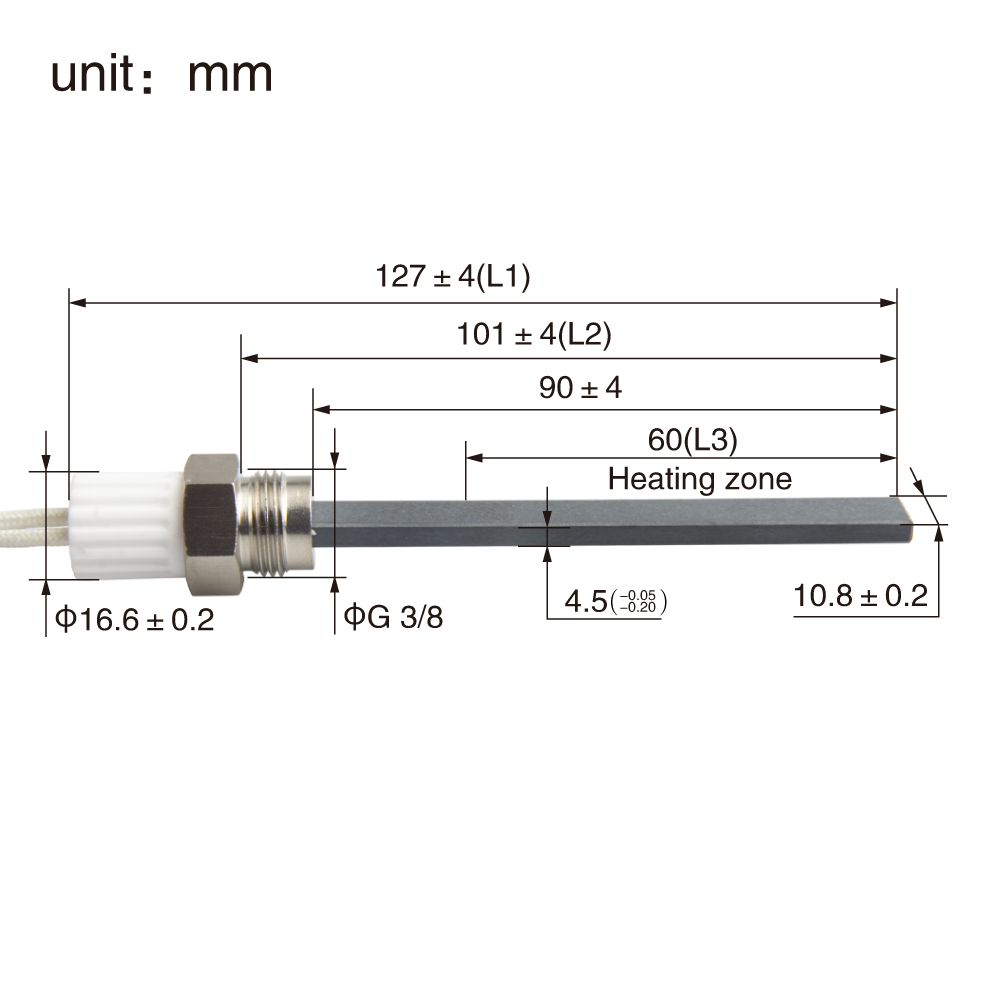 | Rapid heating: Heating faster. up to 1000°c in 10 seconds Range of temperature:1100~1300 °C/2012~2372℉ Small size / High watt density: High-watt density discharge allow high thermak efficiency. Long working life:10 years possible,90,000 hours High insulation Direct water and kerosene heating Vacuum environment Oxidation and chemical resistance Output switching Temperature sensing |