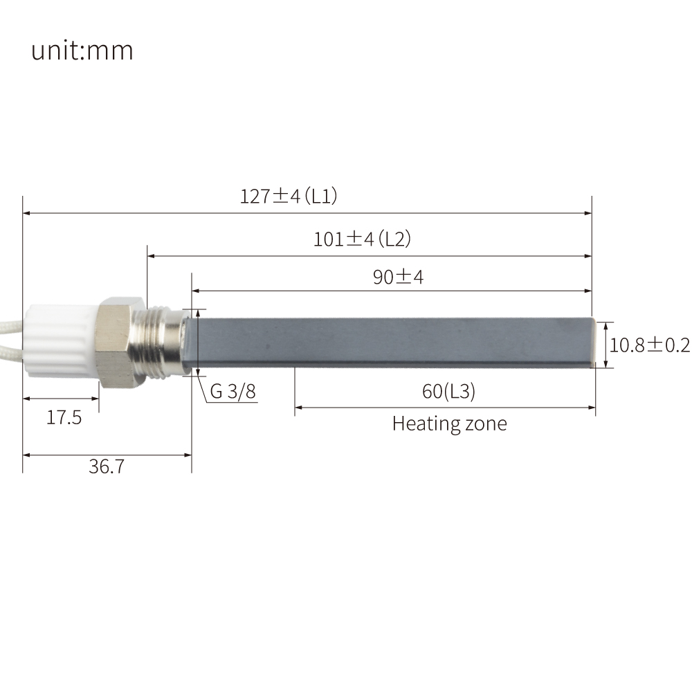 | Rapid heating: Heating faster. up to 1000°c in 10 seconds Range of temperature: 1100~1300 °C/2012~2372℉ Small size / High watt density: High-watt density discharge allow high thermak efficiency. Long working life:10 years possible,90,000 hours High insulation Direct water and kerosene heating Vacuum environment Oxidation and chemical resistance Output switching Temperature sensing |